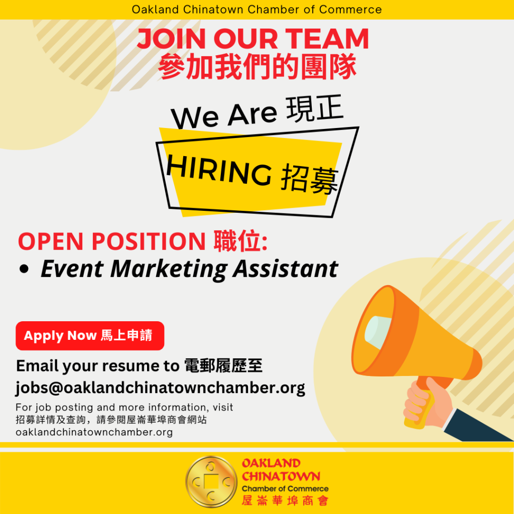The Oakland Chinatown Chamber of Commerce is actively seeking a qualified and dedicated team member to join our team to service the Oakland Chinatown community.